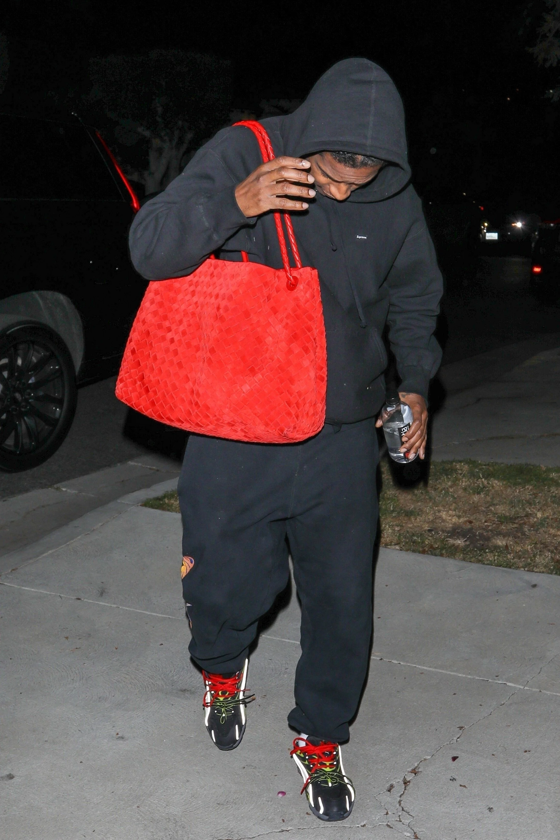 A$AP Rocky wears the large Intrecciato Andiamo bag from the Winter 24 collection, Look 68.
