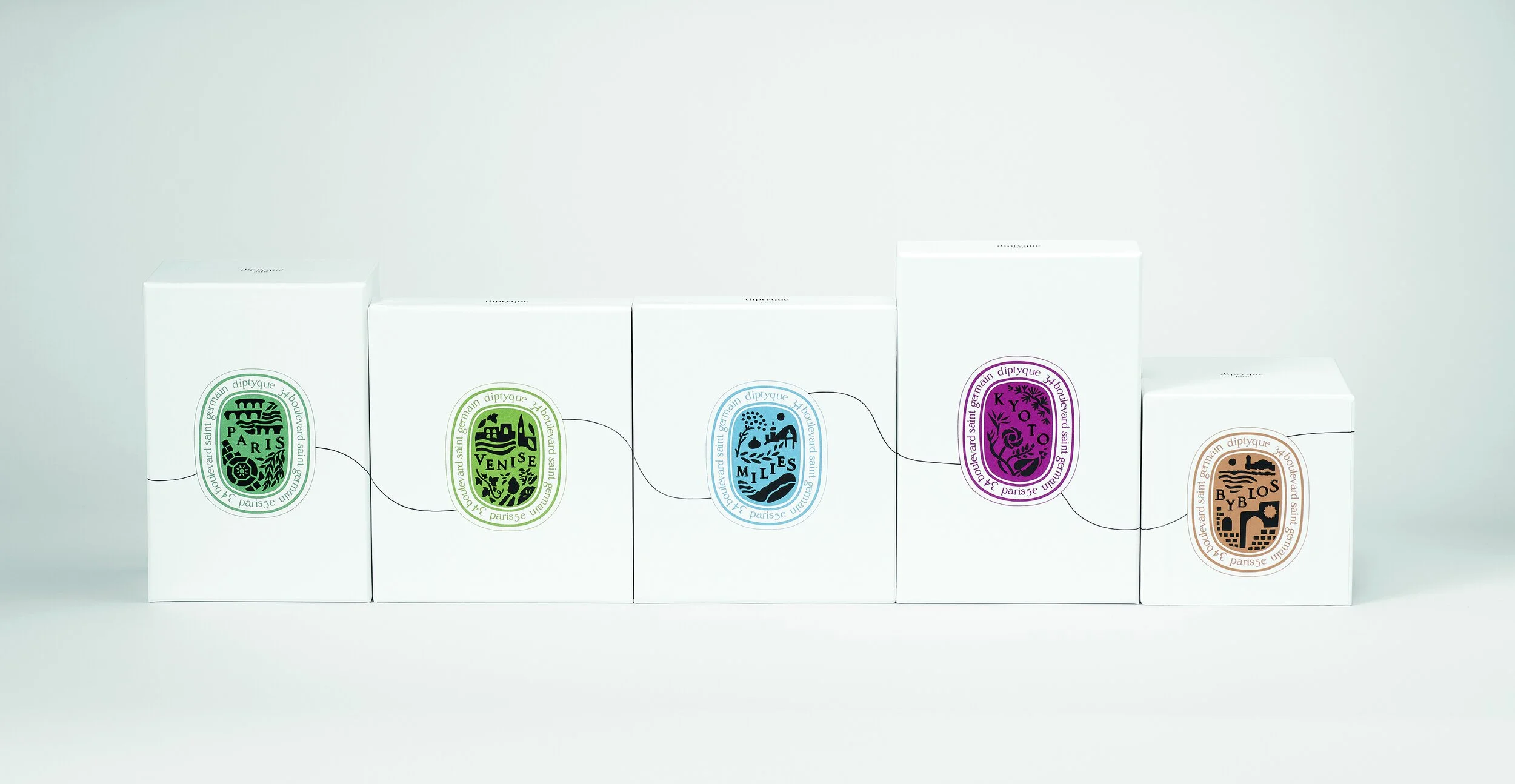 Engaging all our senses, diptyque transports us on a Grand Tour from Occident to Orient. This exclusive collection revisits and spotlights five major destinations that have served as inspiration to the Maison: Paris, Venice, Milies, Kyoto and Byblos. All towns that were dreamed of, imagined, or appreciated by travelling artists.
