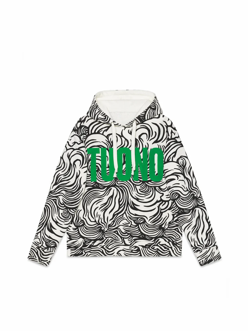 The boutique also presented a selection of clothing and other items bearing images by MP5: a collection of T-shirts and hooded sweatshirts for men and women, and shopper bags, all displaying black-and-white prints that have been inspired by the ancient Chinese text the I Ching (also known as the Book of Changes). The eight “trigrams” from the book represent the forces of nature, and these provide MP5 with the themes of Thunder, Water, Mountain, Fire, Lake, Heaven, Wind and Earth. This new collection follows the existing artist product collaborations at Gucci Garden – the first by Jayde Fish, which resulted in pieces displaying her mystical dreamscapes, and the second by London-based Isabella Cotier, who created colourful faux-naïve illustrations of the eccentric local characters of Florence.