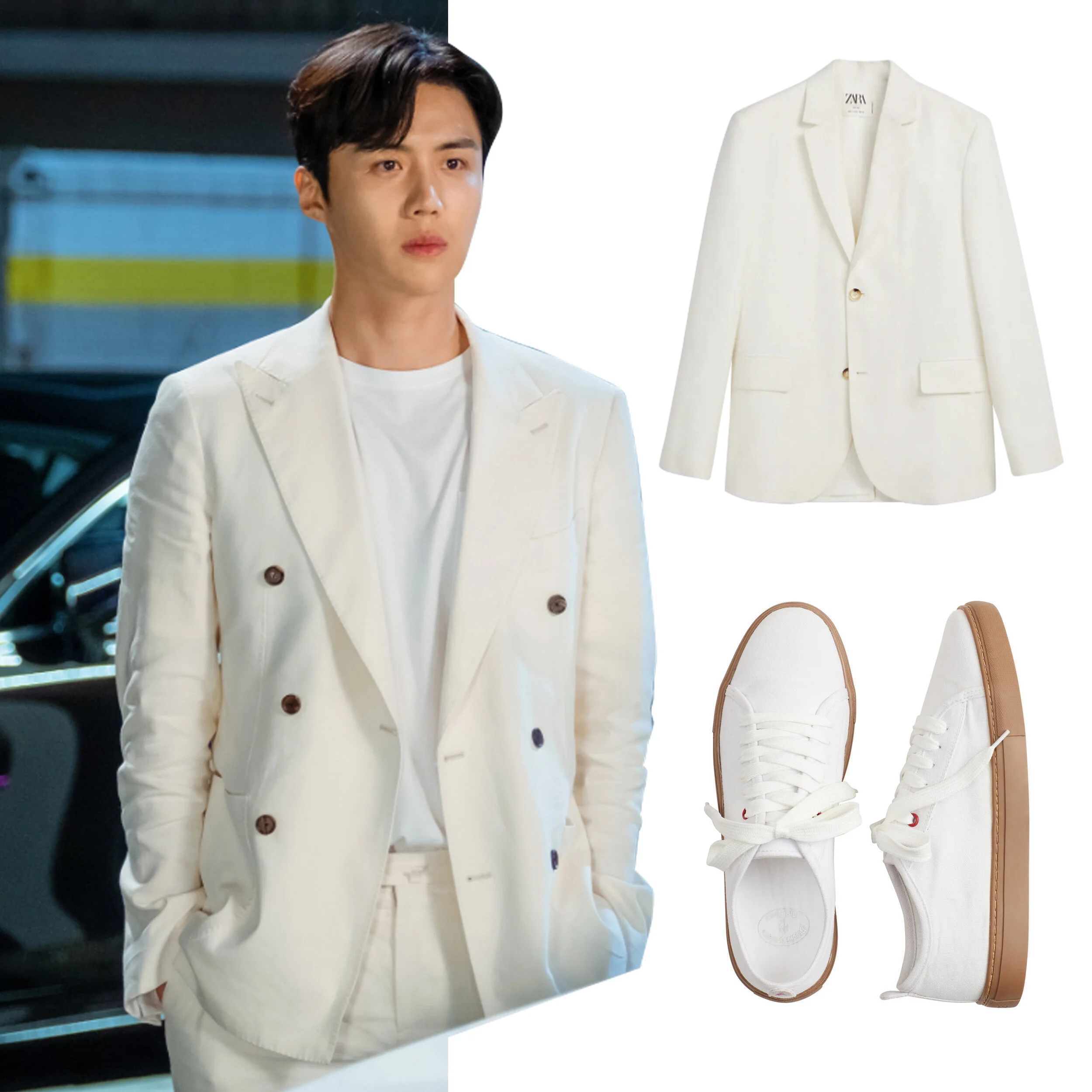 Ji-pyeong on the other hand is a bit older, mature, and more experienced in life and work as a well-known venture capitalist in the tech world, you may think his style is hard, unapproachable, or intimidating. Though we see him always put together in expensive looking ensembles, his style is always tailored yet hinted with softness as we will discover that side of “Good Boy” as he is often referred to as the series progresses. Decked in cool hues of blue, delicate neutrals like cream and white and light plaid patterns, his clean and soft looks give off a smart, sophisticated vibe: