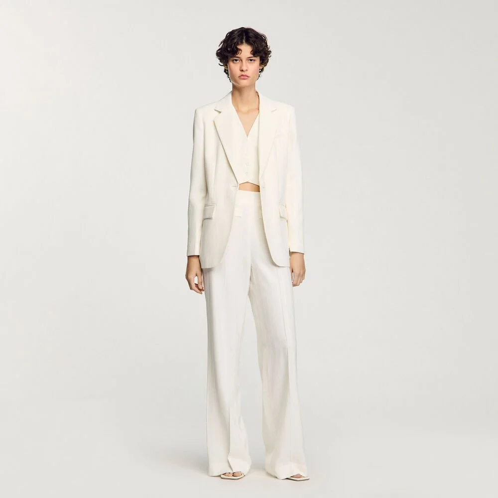Sandro’s take on power dressing includes belted blazers and slim-fit suits that blur the line between sharp and soft.