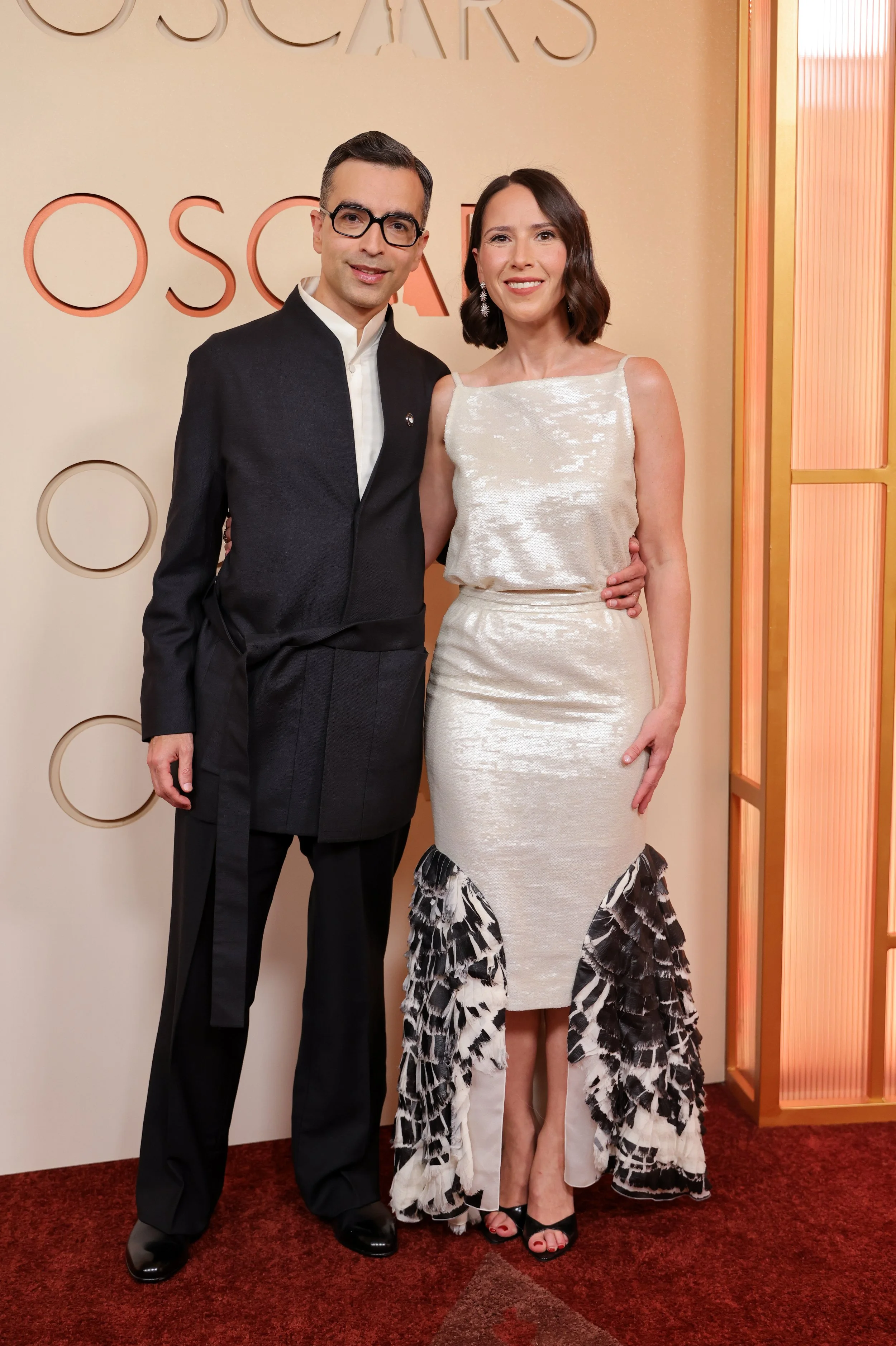 Alexandre Singh wears a ZEGNA 2026 Red Carpet Collection black wool stand up collar jacket with belt, white stand-up collar silk shirt, black wool wide leg trousers and black Gala slip-on shoes at the Dolby Theatre.